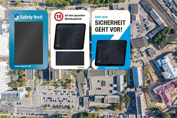Auf großen Industriegeländen, Werkshöfen oder Unternehmensarealen sind Geschwindigkeitsanzeigen ein wichtiger Bestandteil betrieblicher Sicherheit. Mit einer Bedruckung im Corporate Design Ihres Unternehmens stärken Sie nicht nur die interne Kommunikation von Sicherheitswerten, sondern betonen auch nach außen die Relevanz, die Ihre Organisation dem Thema Sicherheit beimisst. So wird die Anzeige zum Teil der Unternehmenskultur.